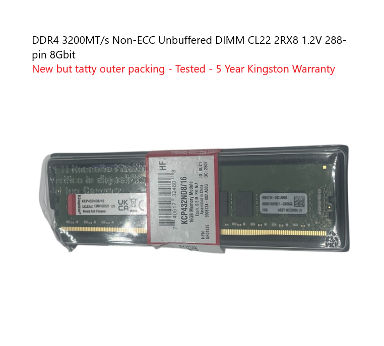 Item is in open box condition and will be fully functional and only ever used by us to test it prior to shipping. The original outer packaging will have some cosmetic damage. Sold with full Kingston warranty. VAT invoice provided.