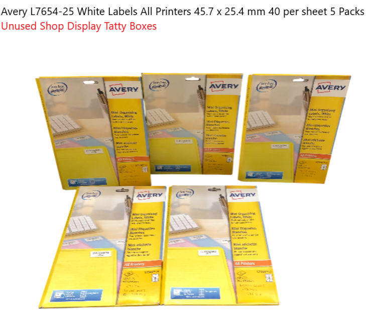 labels are unused but have WRONG LABEL ON BOX so have all been opened to check boxes have cosmetic damage. VAT invoice supplied