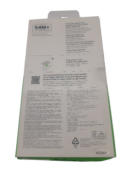 | Product Description | Belkin ScreenForce UltraGlass 2 – screen protector for mobile phone – 9H, treated |