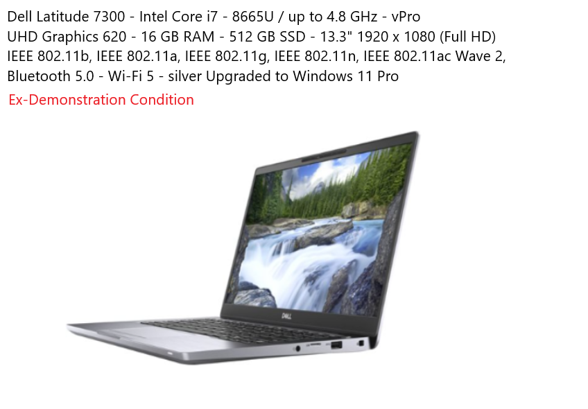 - Dell Latitude 7300 – 13.3″ – Intel Core i7 – 8665U – vPro – 16 GB RAM – 512 GB SSD