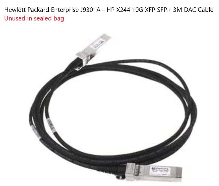 Hewlett Packard Enterprise J9301A – HP X244 10G XFP SFP+ 3M DAC CABLE