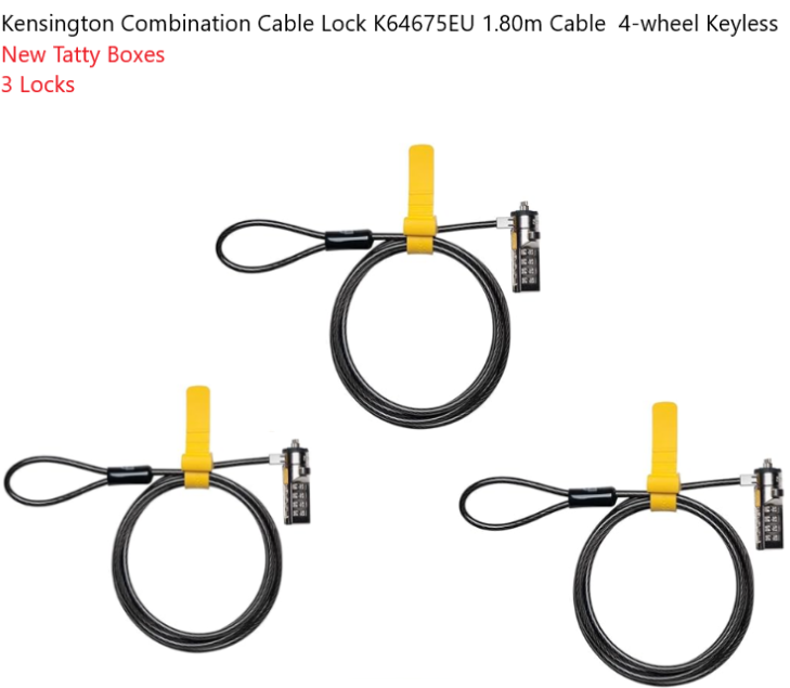 Kensington Combination Cable Lock K64675EU 1.80m Cable 4-wheel Keyless x3