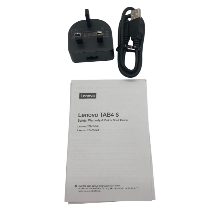 LENOVO  TB-8504F in very good condition. Tested in our workshop, complete with original box contents. Open original packaging, outer box has cosmetic damage. Price reduced to reflect packaging condition. Sold with 90 days RTB  warranty A VAT invoice will be provided.