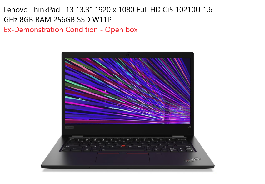Lenovo ThinkPad L13 – 13.3″ – Core i5 10210U – 8 GB RAM – 256 GB SSD – UK