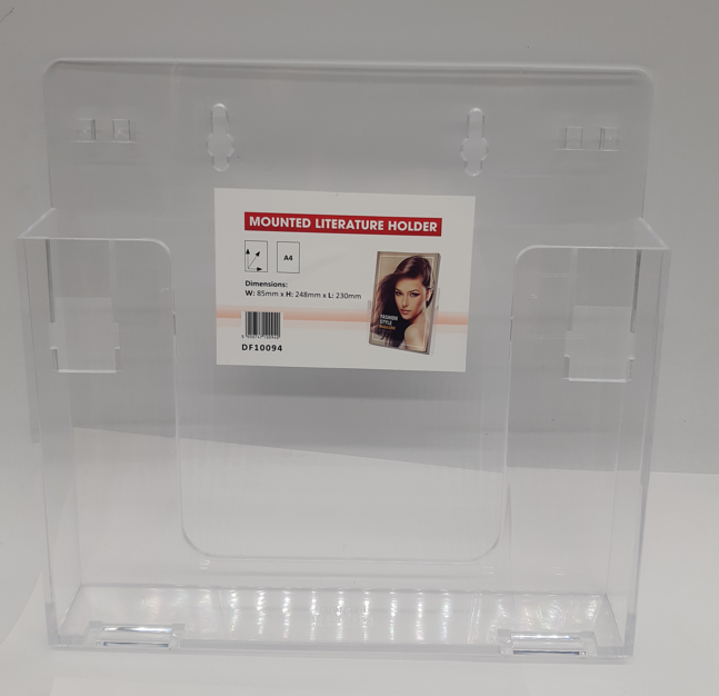 This Announce Clear Literature Holder is ideal for displaying a wide range of literature clearly and professionally. Great for a variety of uses, from trade fairs to reception rooms, this holder is durable for hardwearing use. wall mounted and display contents up to A4 in size.