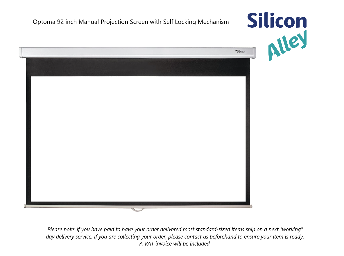 Optoma 92 inch Manual Projection Screen part number DS-9092PWC is in very good condition, Please note this item has some case distortion, opening mechanism functions as intended. Inspected in our workshop, complete with original box contents. Open original packaging, outer box has cosmetic damage. Collection only. VAT invoice included.