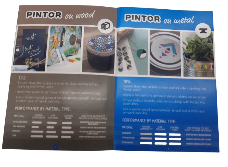 Pigment-rich and water-based Pilot Pintor ink covers many surfaces, including paper, wood, glass, ceramic, plastic, metal, fabric