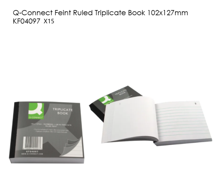 Q-Connect Feint Ruled Triplicate Book 102x127mm KF04097