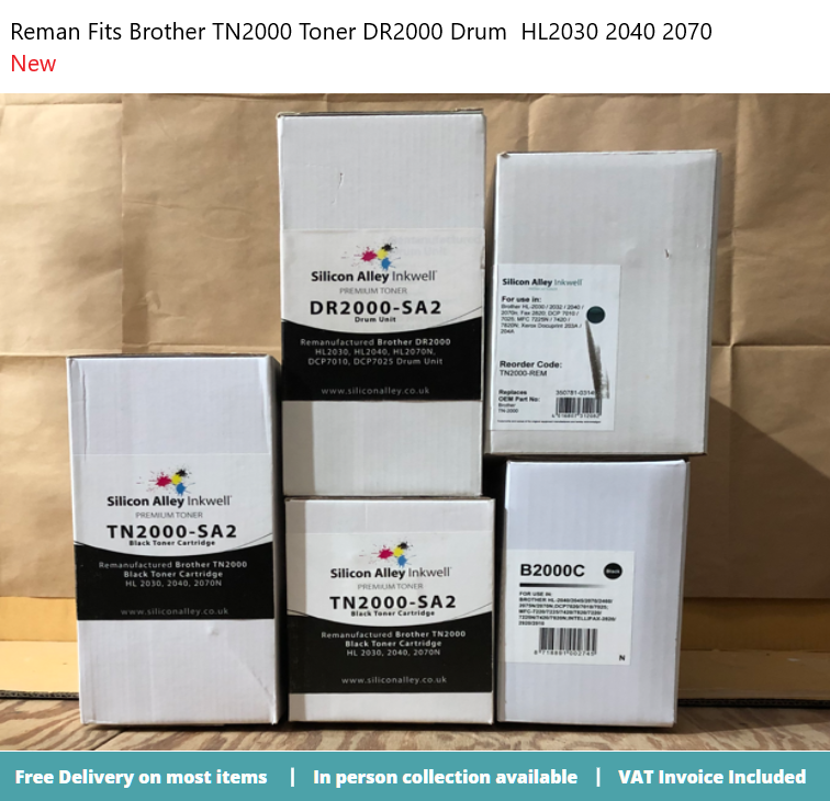 Reman Fits Brother TN2000 Toner x4 DR2000 Drum x1 HL2030 2040 2070