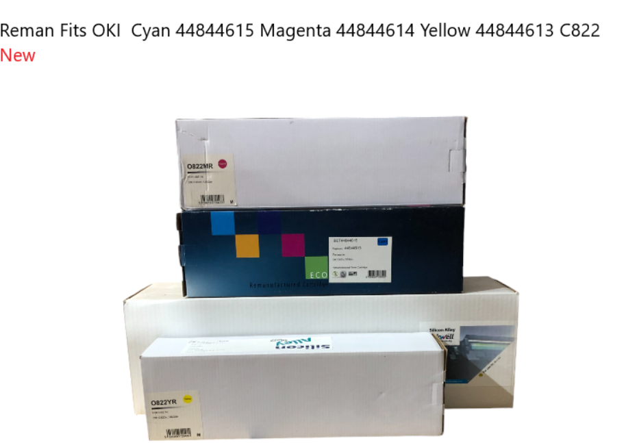 Reman Fits OKI Cyan 44844615 C822M Magenta 44844614 C822Y Yellow 44844613 x2 C822