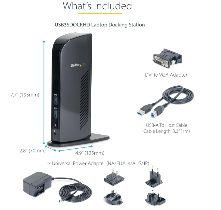 | What’s in the Box | 1 – Included in Package | USB 3.0 Docking Station |