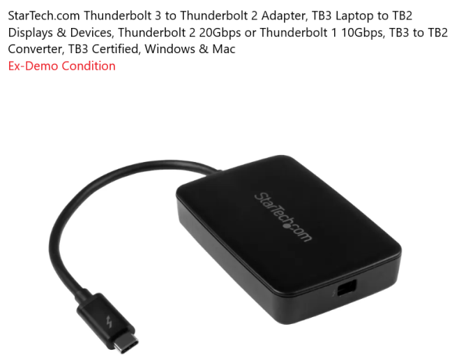 StarTech.com Thunderbolt 3 to Thunderbolt 2 Adapter, TB3 Laptop to TB2 Displays & Devices, Thunderbolt 2 20Gbps or Thunderbolt 1 10Gbps, TB3 to TB2 Converter, TB3 Certified, Windows & Mac – 8in Attached Cable (TBT3TBTADAP) – video adapter – Mini DisplayPort to USB-C – 28 cm |