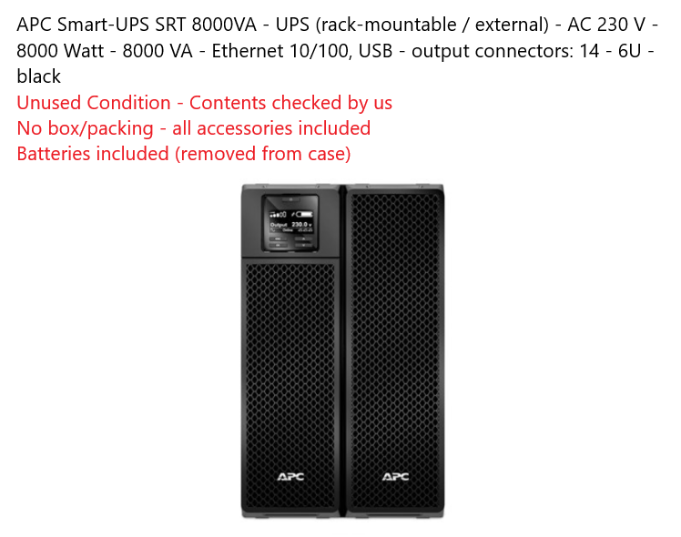 1 x management (Ethernet) – RJ-45 ¦ 1 x management (USB) – 4 pin USB Type B ¦ 1 x EPO (emergency power off) ¦ 1 x serial – RJ-45