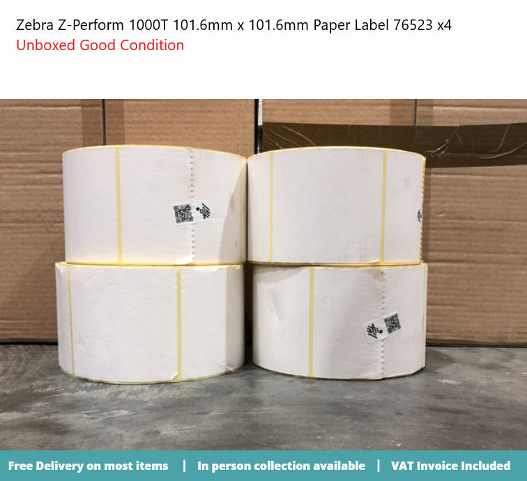 Zebra Z-Perform 1000T 101.6mm x 101.6mm Paper Label 76523 x4